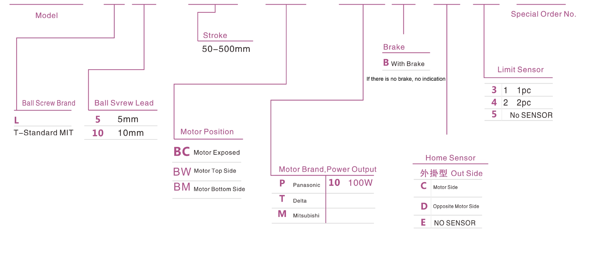 | Environnement standard | vis à billes | EC 50 | 100 W | 52 | ±0,01 | 12 | 5 | 30 | 12 | 250 |
