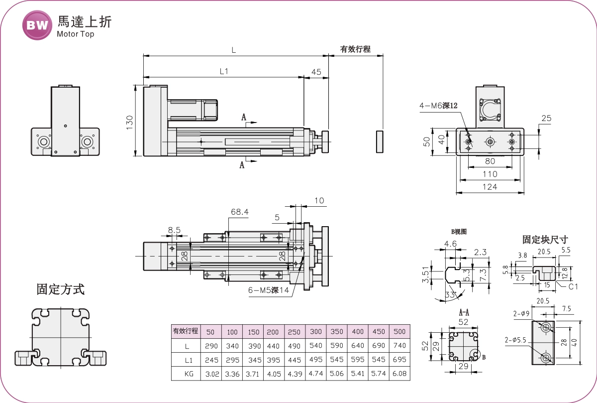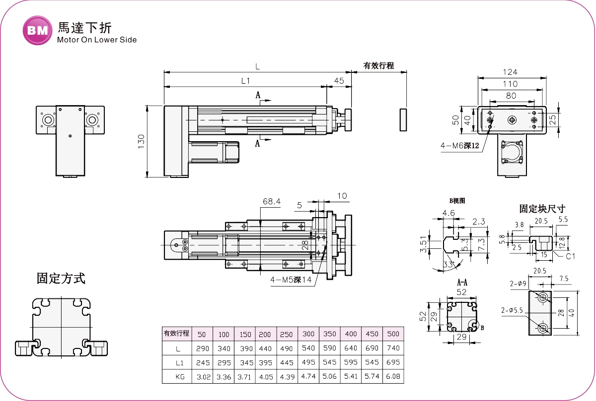Course : 50-500 mm