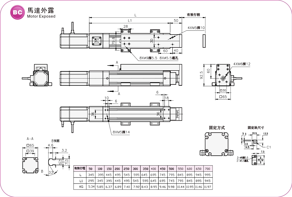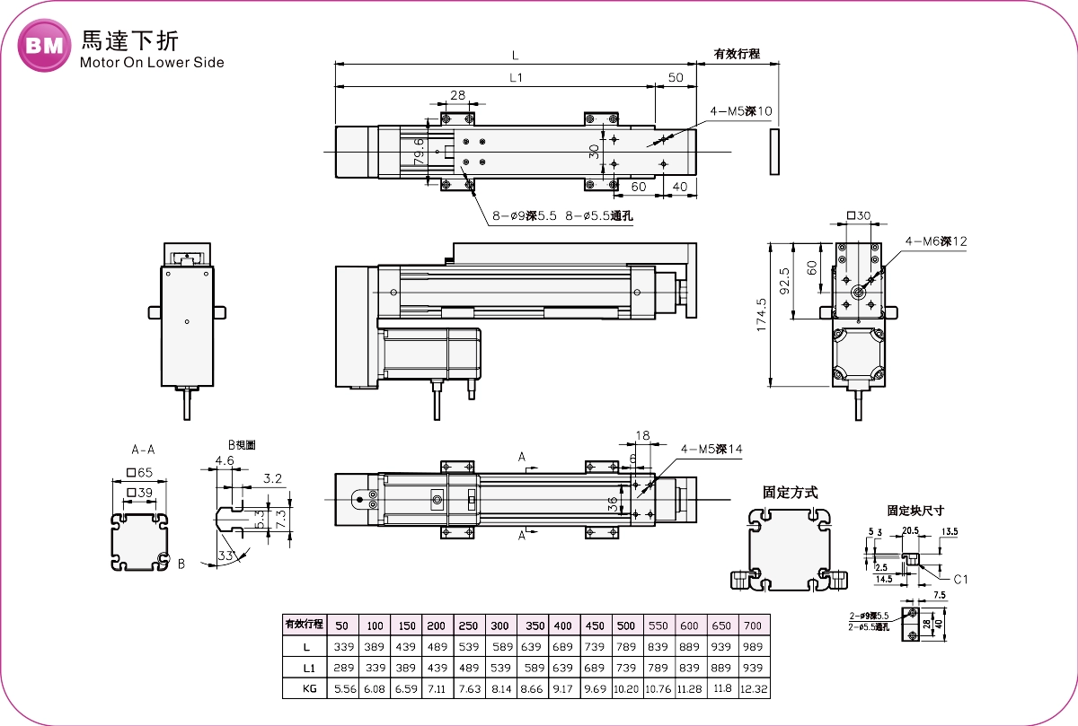 Localisation actuelle:Accueil > Produit > Cylindre électrique > Série EC > EC65L > Moteur côté gauche