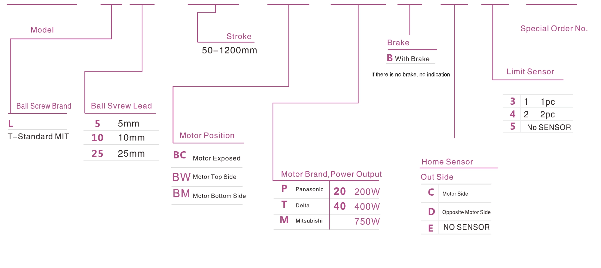 | Utiliser là | Mode de conduite | Spécifications du modèle | Puissance du moteur (W) | Largeur (mm) | Répétabilité (mm) | Spécifications de la vis à billes | Charge utile maximale (kg) | vitesse maximale (mm/s) *1 | ||