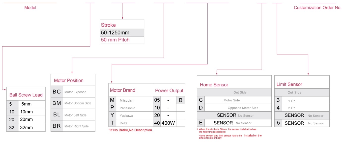 | Utiliser là | Mode de conduite | Spécifications du modèle | Puissance du moteur (w) | Largeur (mm) | Répétabilité (mm) | Spécifications de la vis à billes | Charge utile maximale (kg) | vitesse maximale (mm/s) *1 | ||