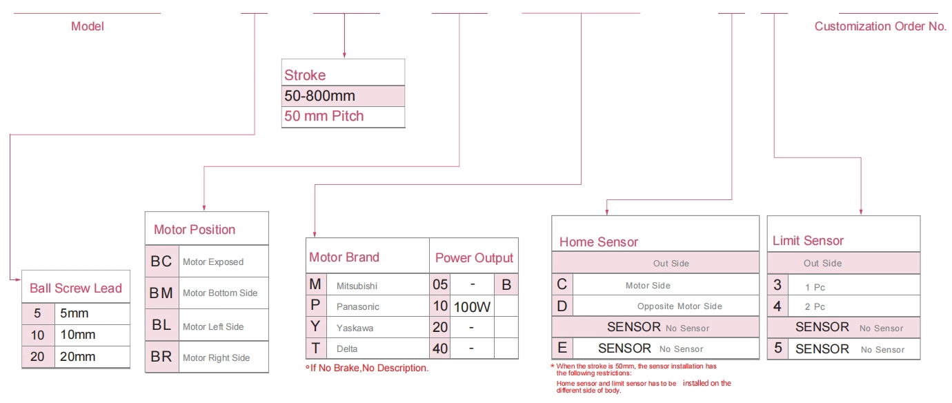 | Utiliser là | Mode de conduite | Spécifications du modèle | Puissance du moteur (w) | Largeur (mm) | Hauteur du corps (mm) | Répétabilité (mm) | Spécifications de la vis à billes | Charge utile maximale (kg) | vitesse maximale (mm/s) *1 | ||||||||||