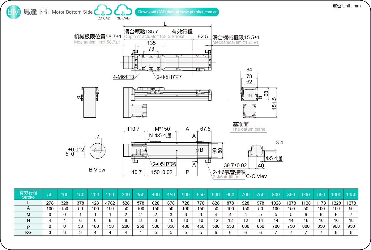 | Guide linéaire haute rigidité (mm) | Actionneur à vis à billes | ||||