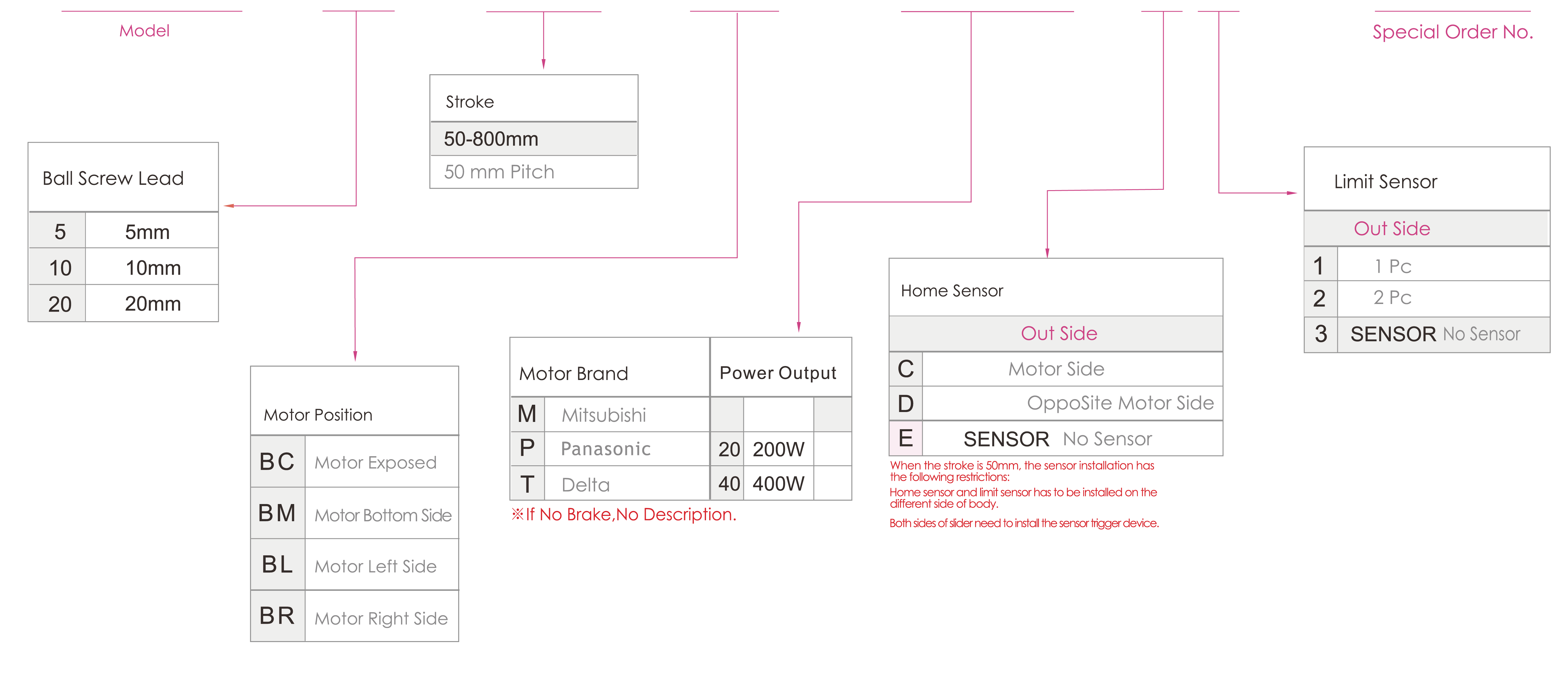 | Pas de la course (mm) | Pas de 50 à 800 mm / 50 | ||||