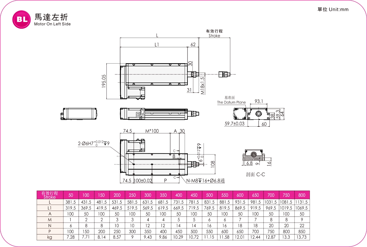 Course : 50-800 mm