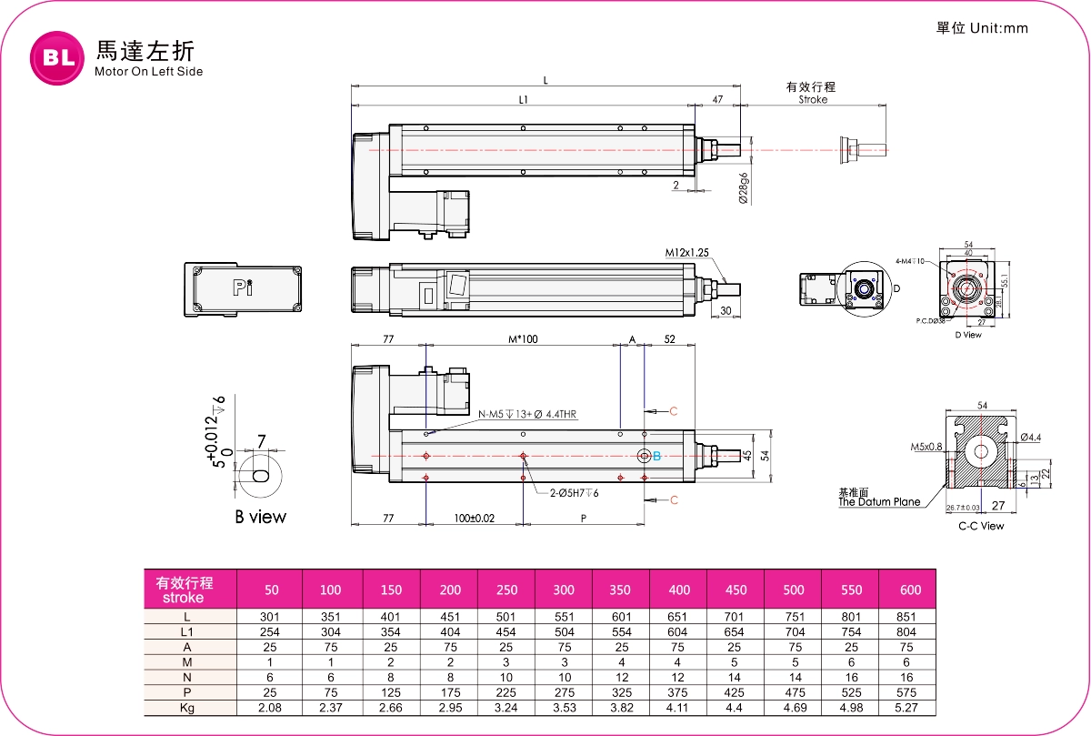 | Parties | Vis à billes Ø(mm) | C7Ø16 | ||||