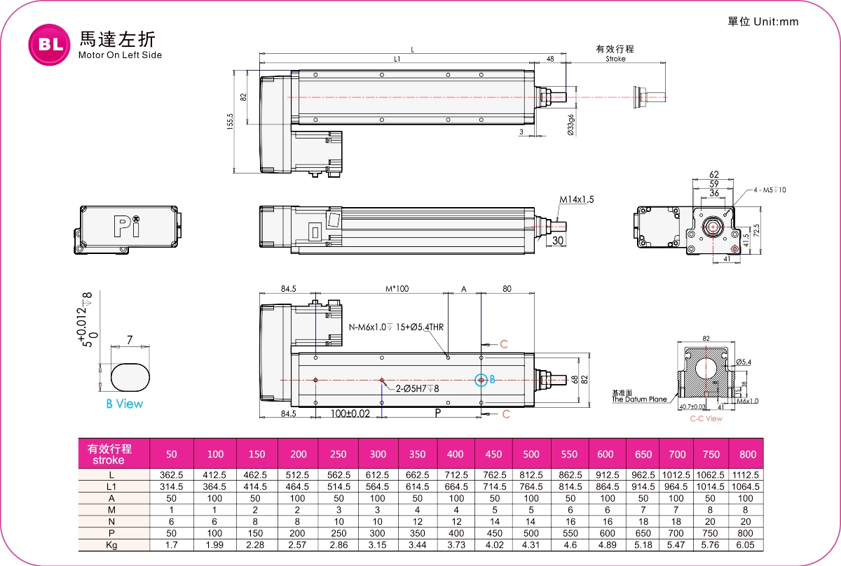 | Parties | Vis à billes Ø(mm) | C7Ø16 | |||
