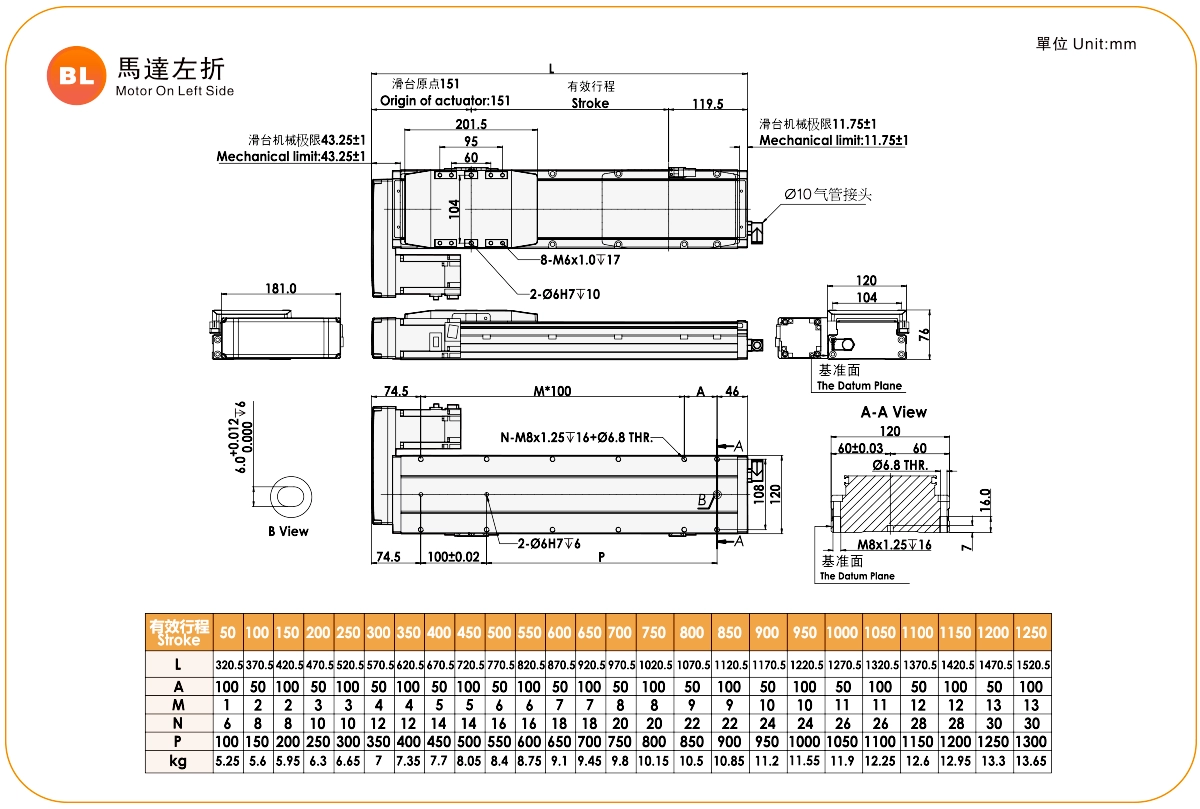 | Guide linéaire haute rigidité (mm) | Actionneur à vis à billes | |||||