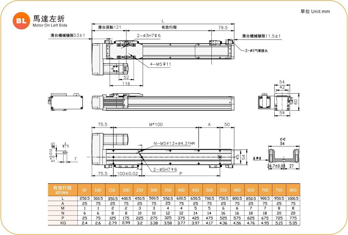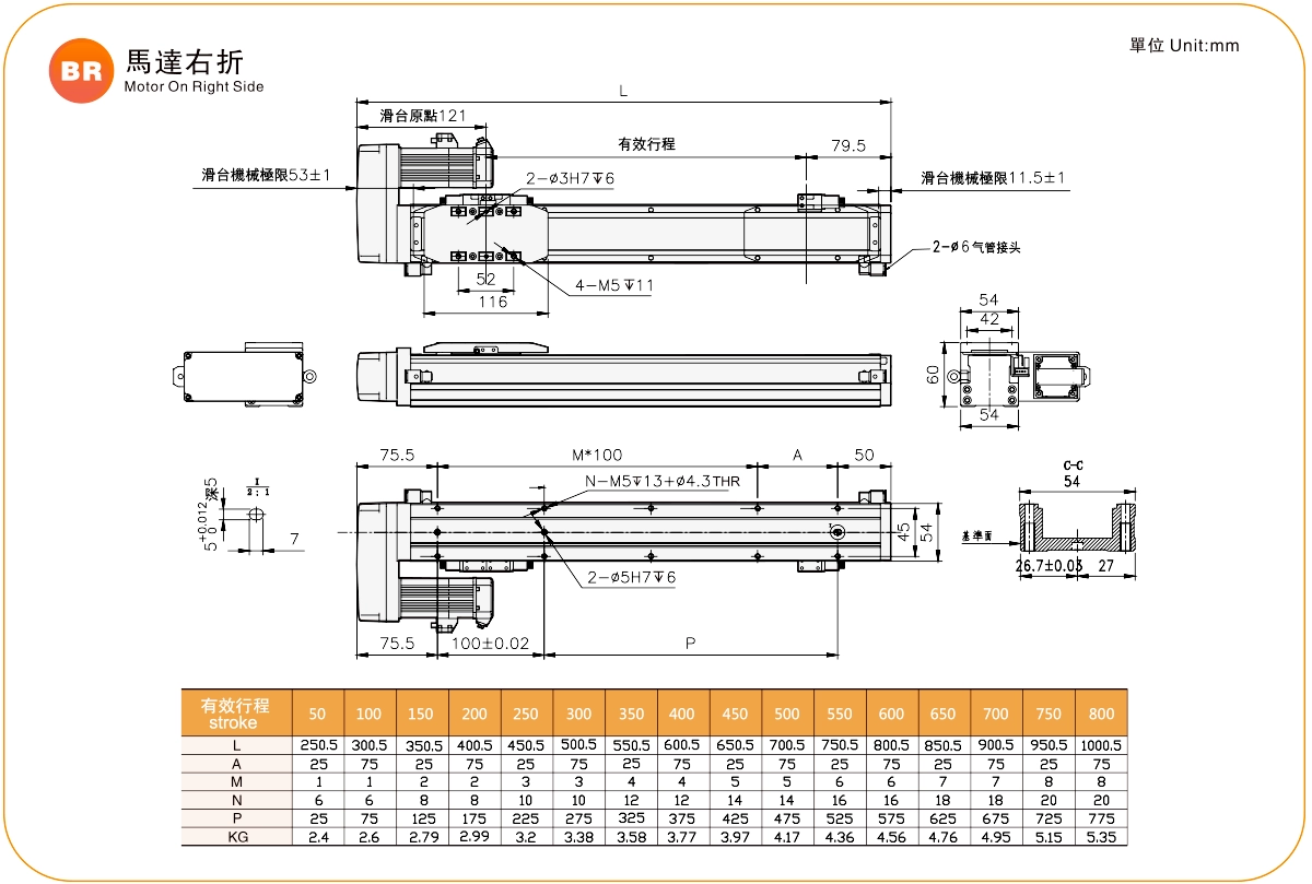 | Pas de la course (mm) | Pas de 50 à 800 mm / 50 mm | |||||