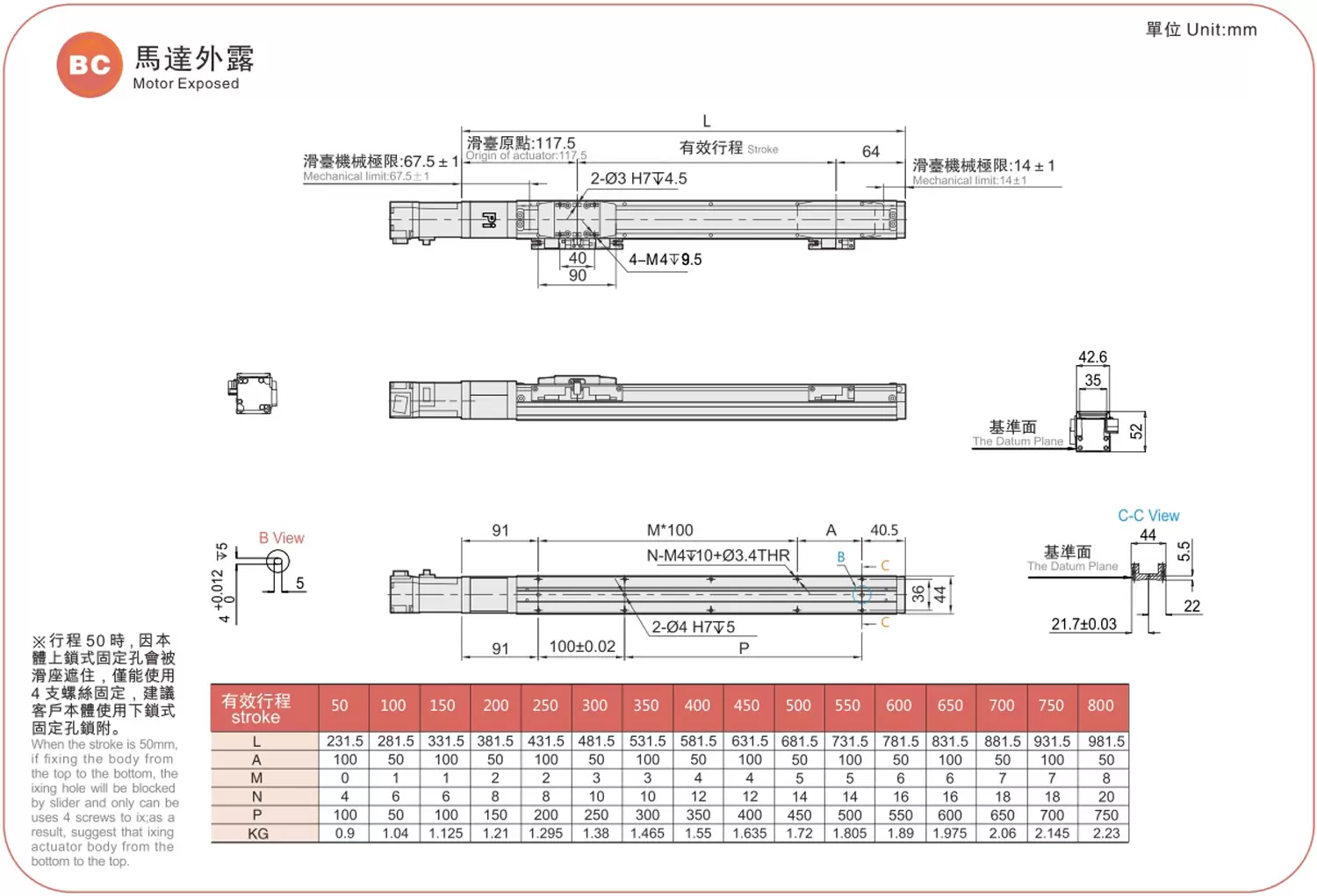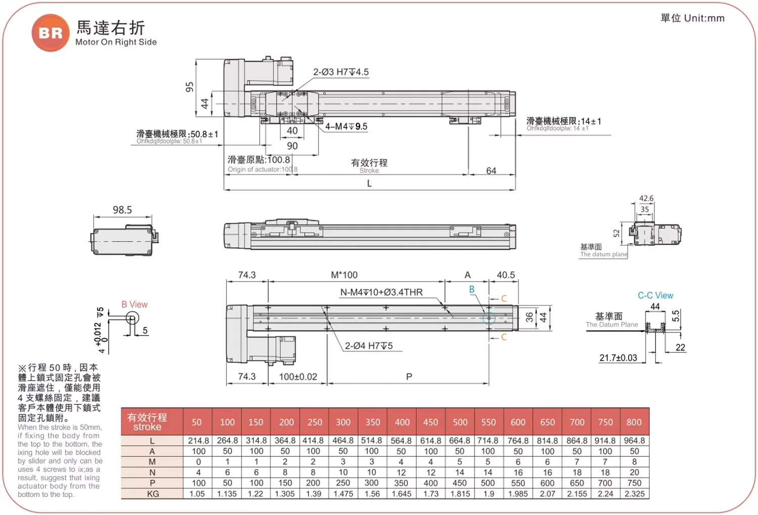 | Pas de la course (mm) | Pas de 50 à 800 mm / 50 mm | ||||