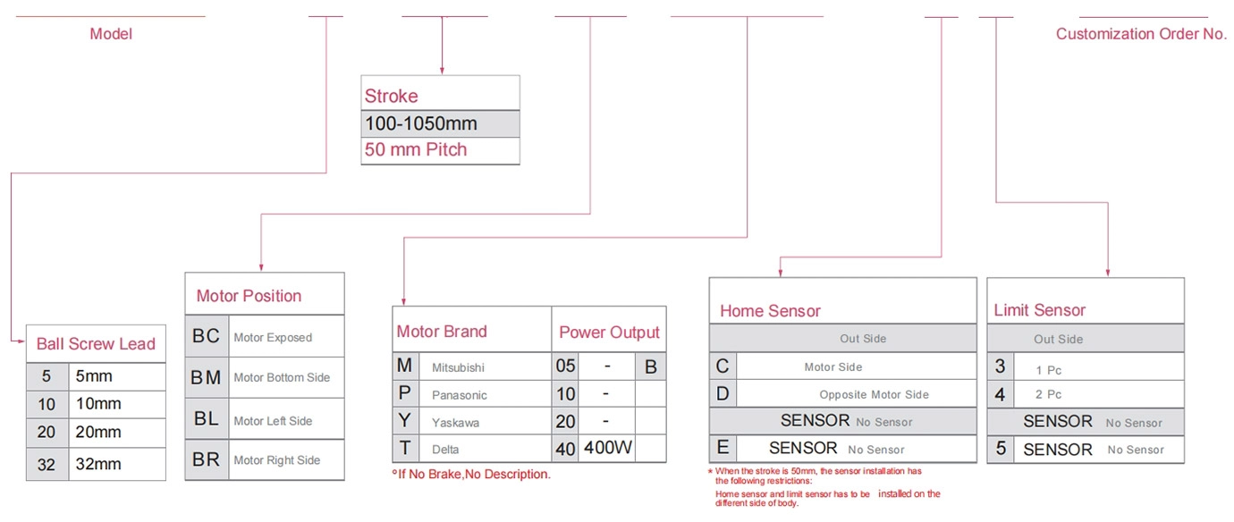 | Utiliser là | Mode de conduite | Spécifications du modèle | Puissance du moteur (w) | Largeur (mm) | Hauteur du corps (mm) | Répétabilité (mm) | Spécifications de la vis à billes | Charge utile maximale (kg) | vitesse maximale (mm/s) *1 | ||||||||||
