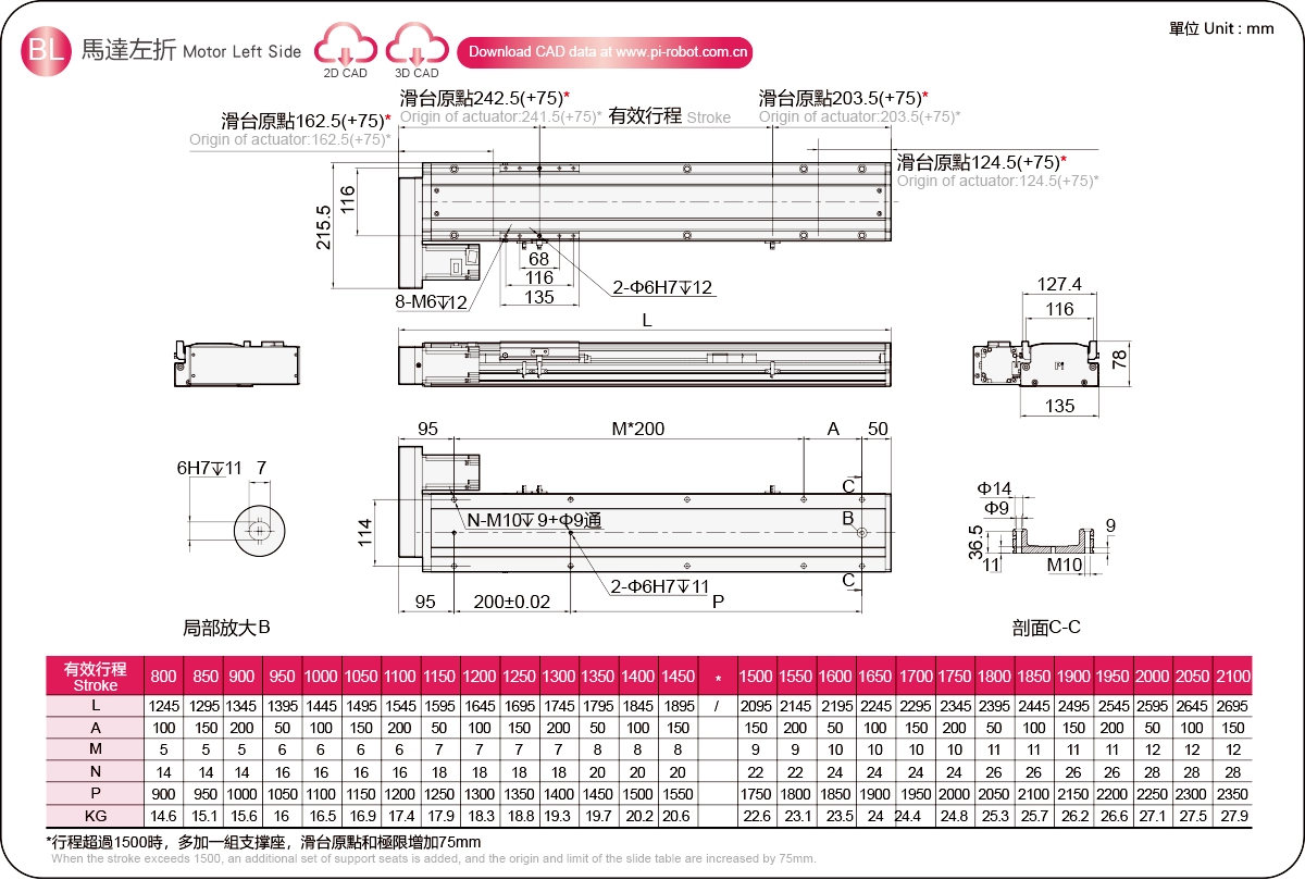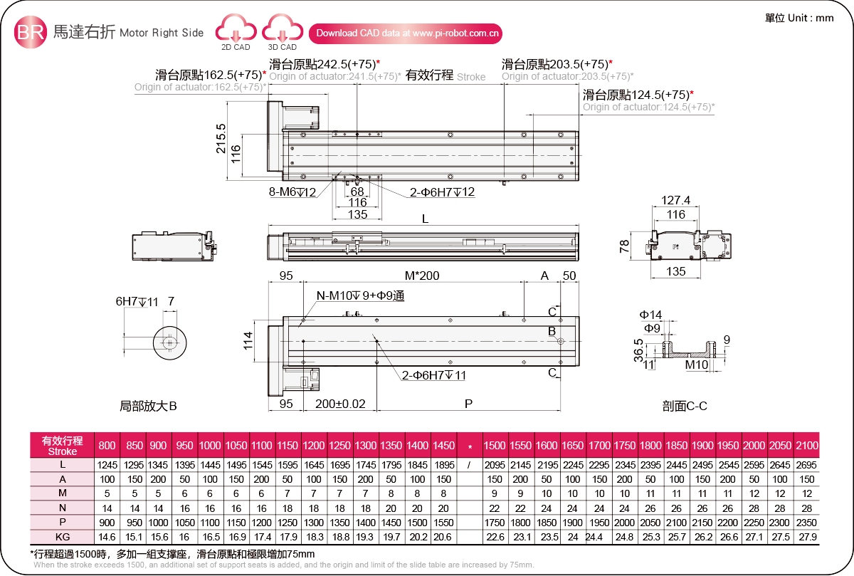 | Pas de la course (mm) ※2 | Pas de 800 à 2100 mm / 50 mm | |||||