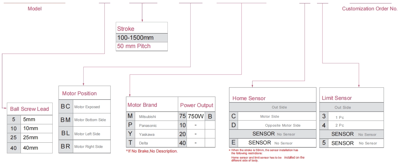 | Utiliser là | Mode de conduite | Spécifications du modèle | Puissance du moteur (w) | Largeur (mm) | Hauteur du corps (mm) | Répétabilité (mm) | Spécifications de la vis à billes | Charge utile maximale (kg) | vitesse maximale (mm/s) *1 | ||||||||||