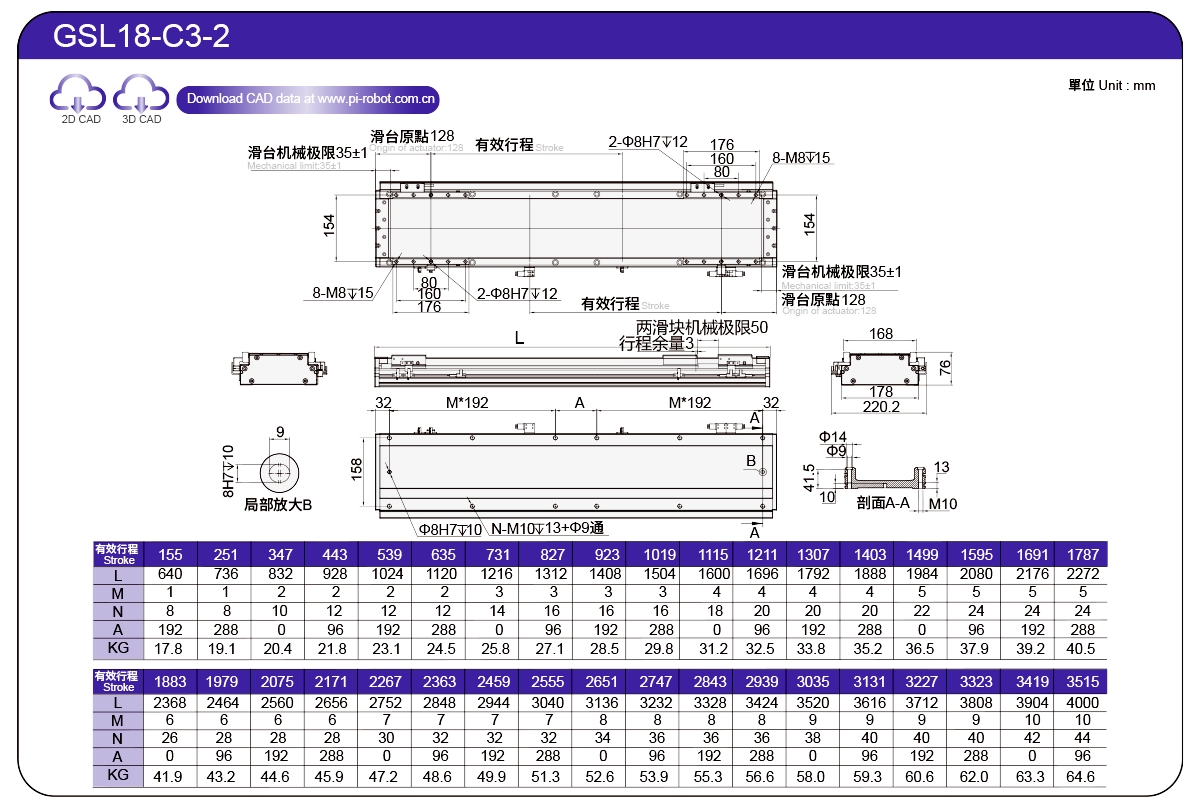 | Standard | Robot à moteur linéaire | GSL7 | P27-C1 | 75 | 65 | ±0,003 | 26 | 57 | 3.3 | 6 | 2500 |