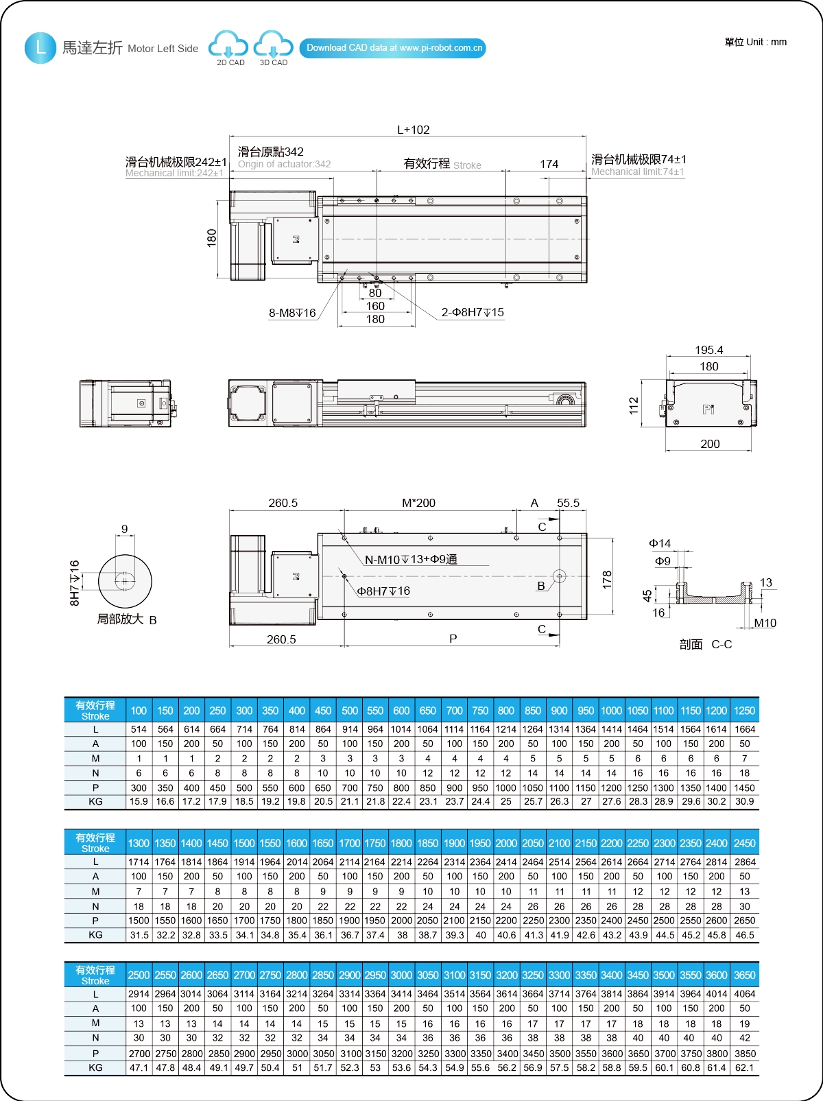 Localisation actuelle:Accueil > Produit > Actionneur de courroie standard > Série GSP > GSP20 > Moteur côté inférieur gauche