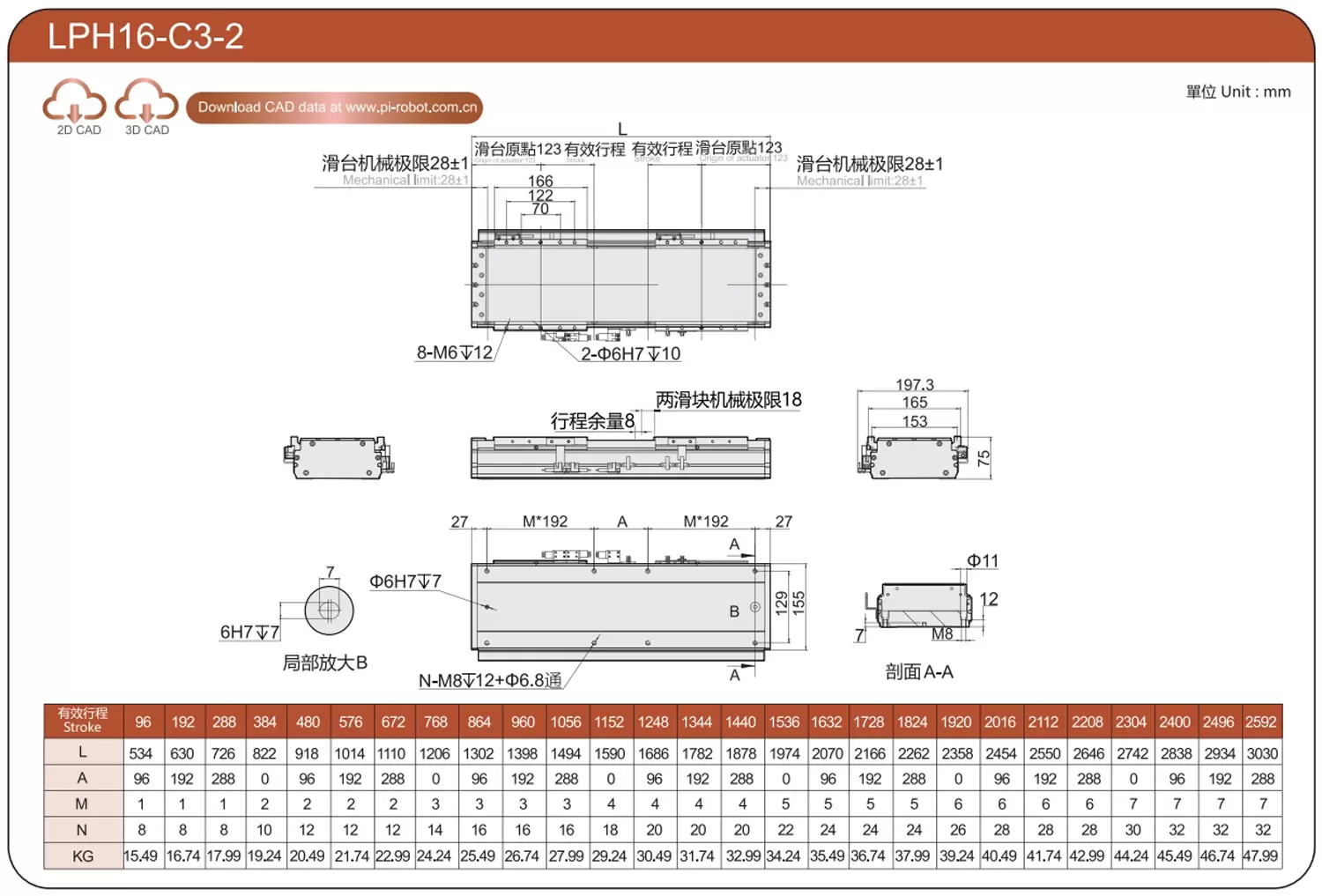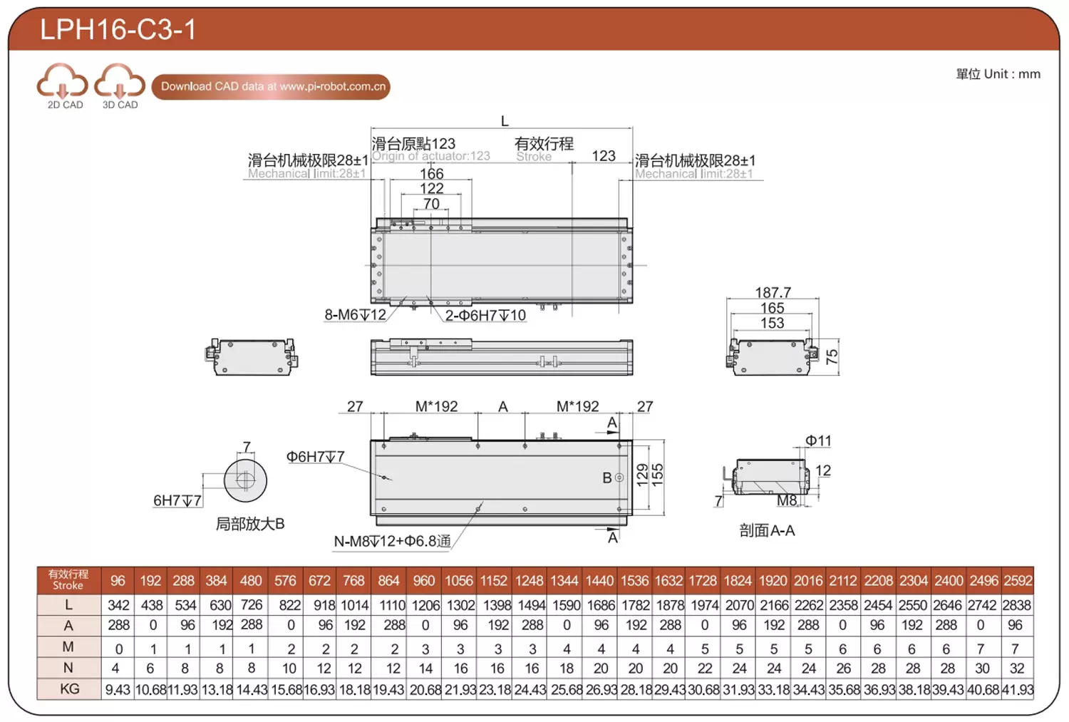 | Standard | Robot à moteur linéaire | LPD12 | P40-C2-S | 125 | 80 | ±0,003 | 80 | 176 | 3.3 | 20 | 2500 |