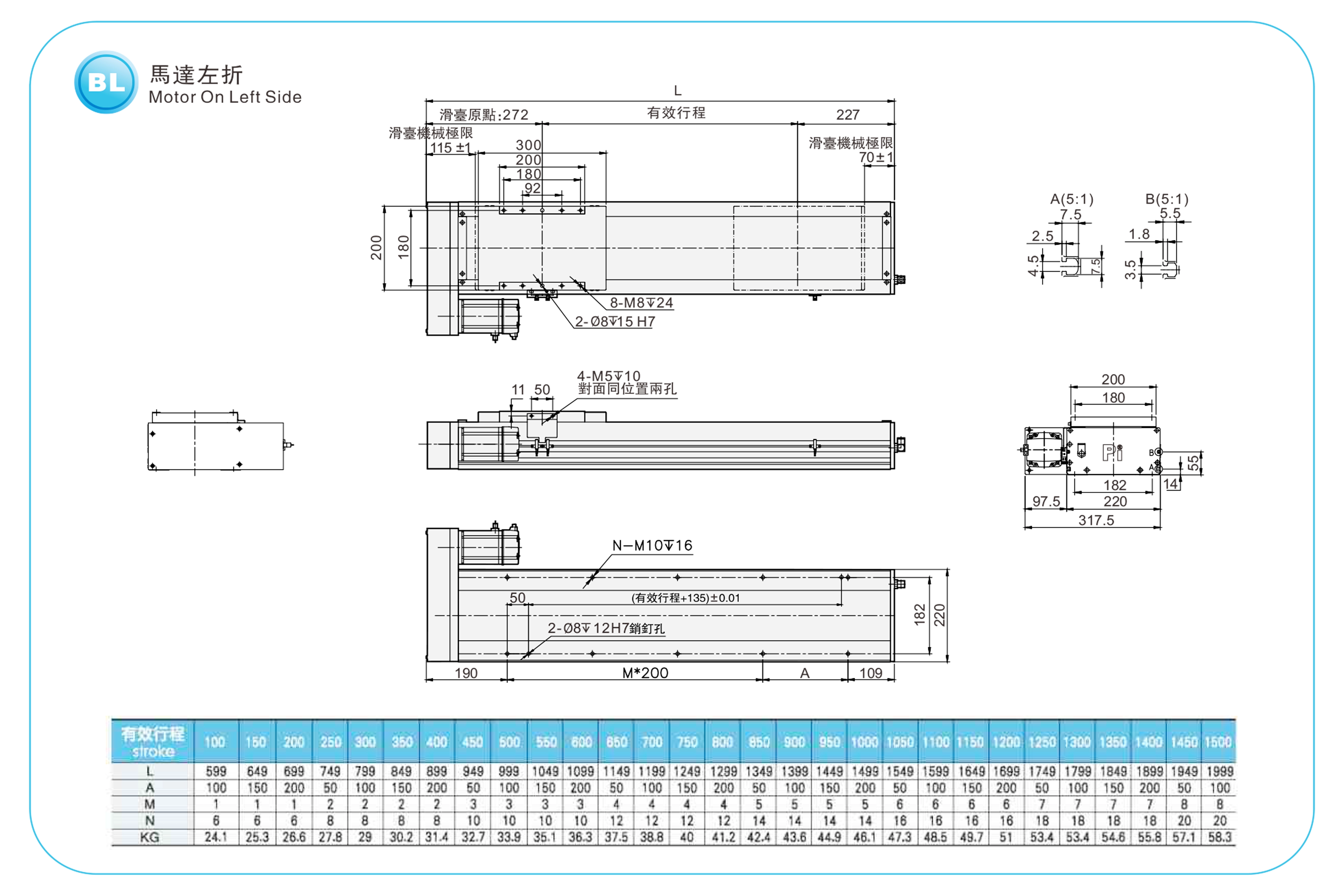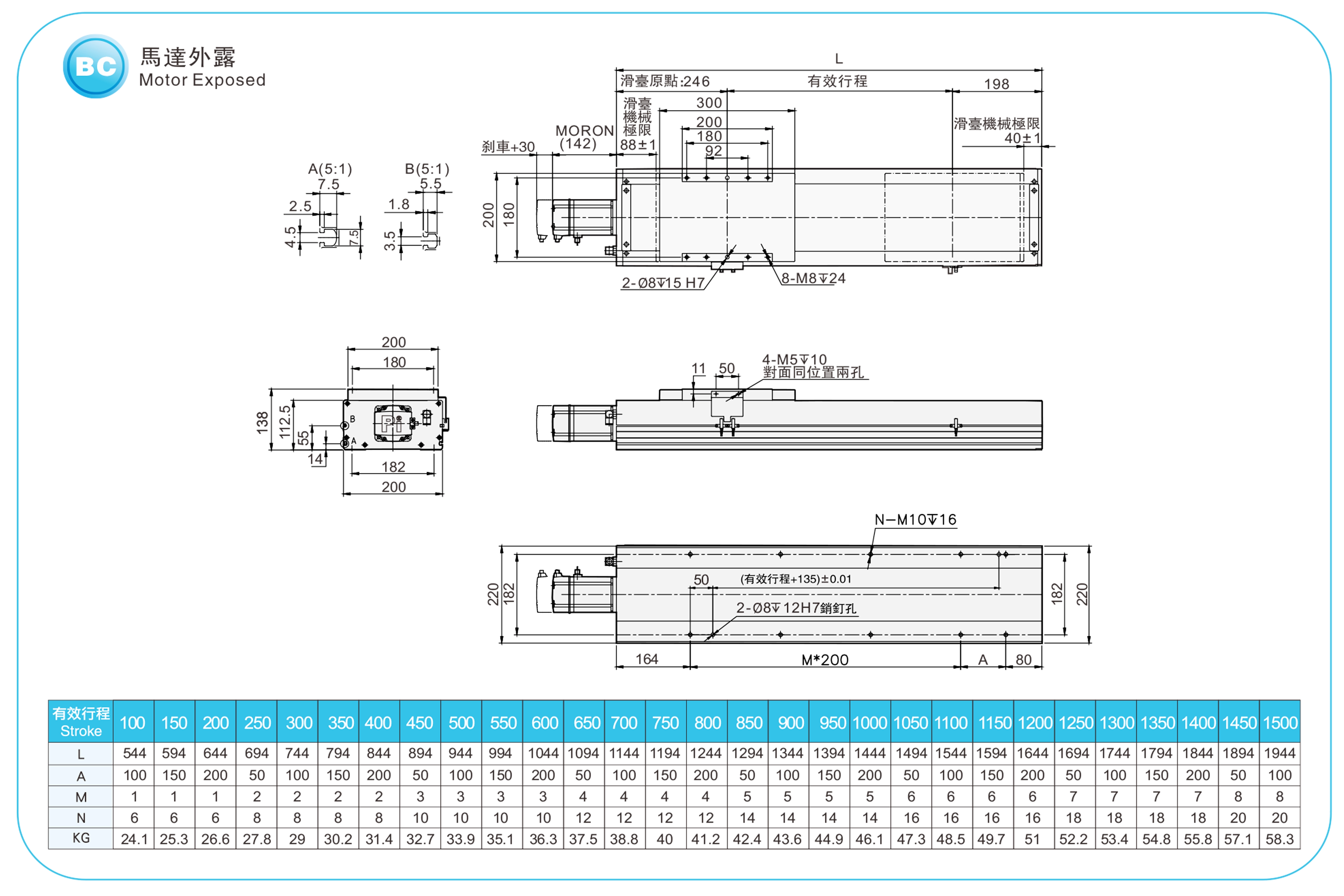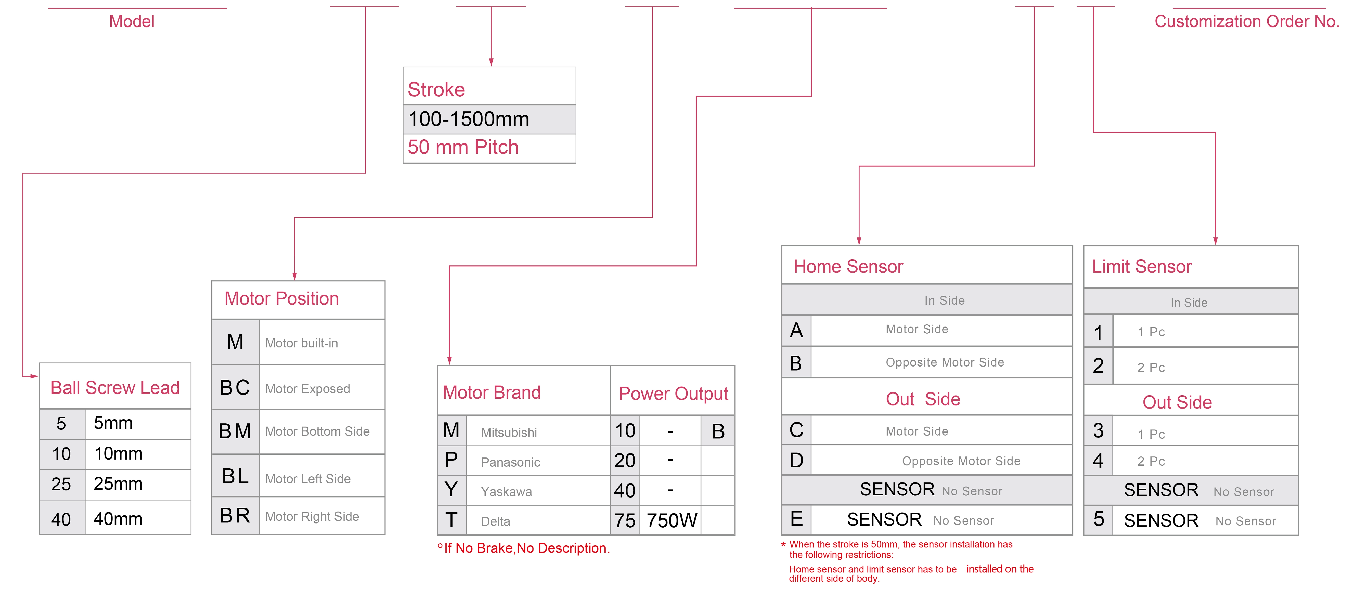 | Pas de la course (mm) | Pas de 100 à 1500 mm / 50 mm | |||||