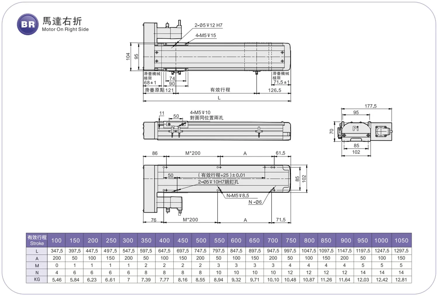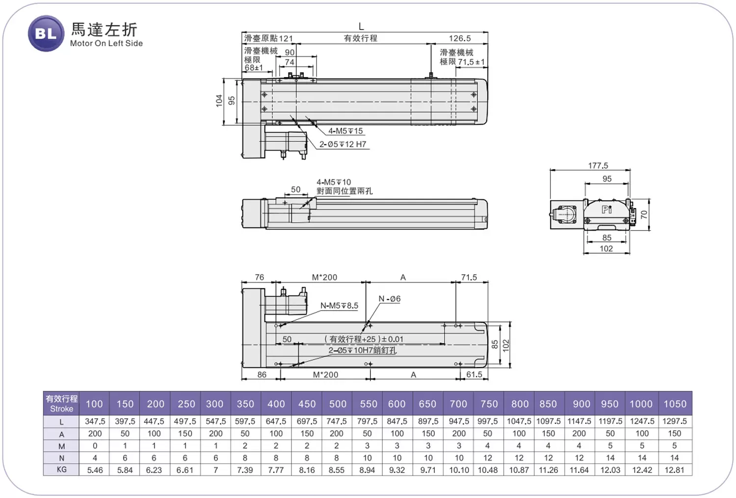 | Guide linéaire haute rigidité (mm) | L12 x H7,5 | |||||