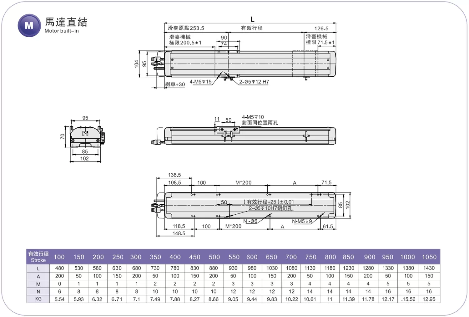 | Environnement standard | vis à billes | RMH12 | 100 W | 102 | ±0,01 | 16 | 5 | 50 | 12 | 250 |