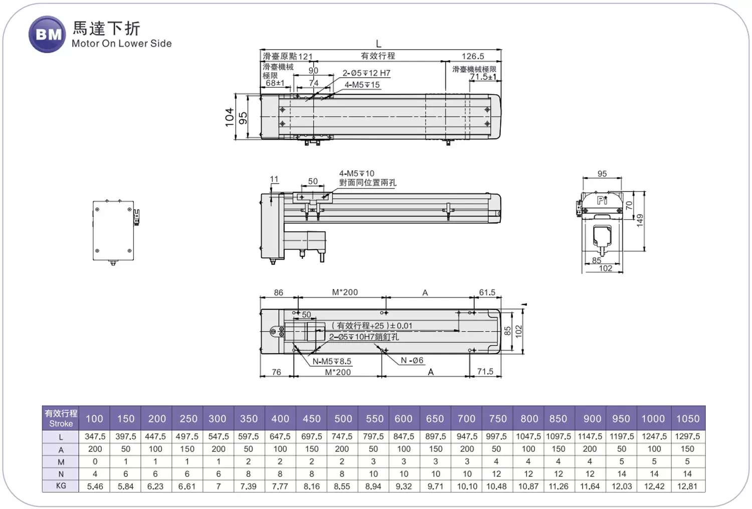 | Pas de la course (mm) | Pas de 100 à 1050 mm / 50 mm | |||||