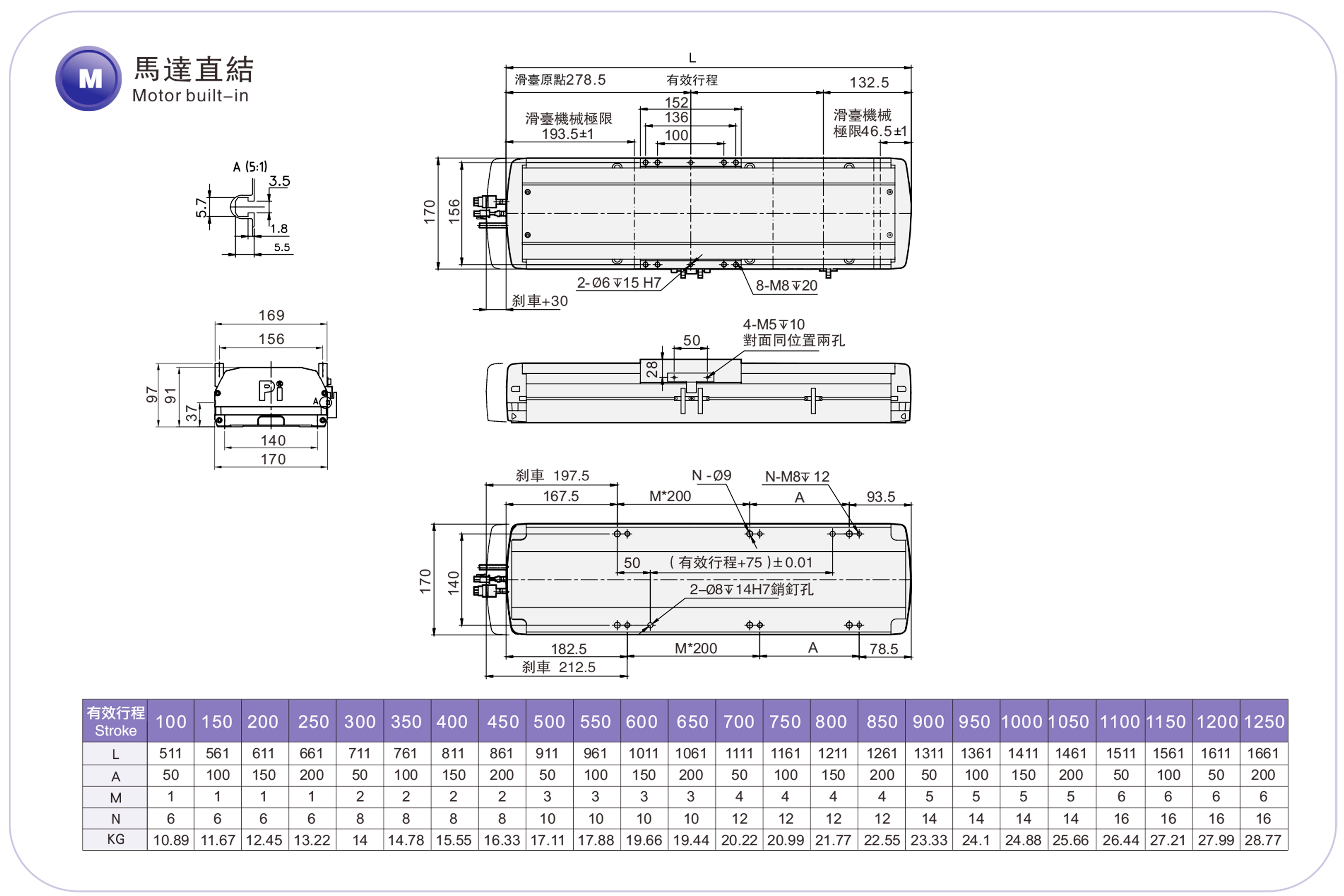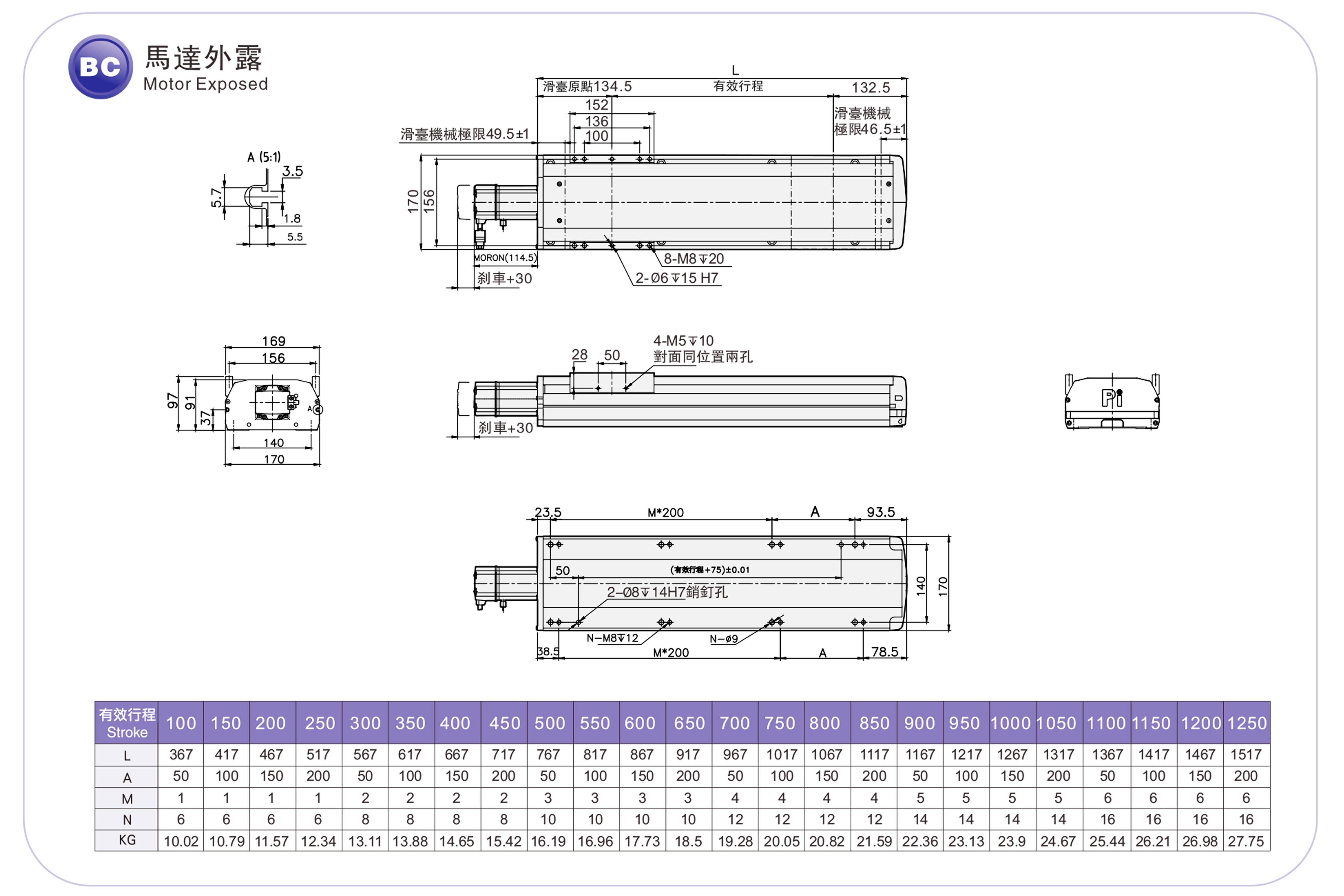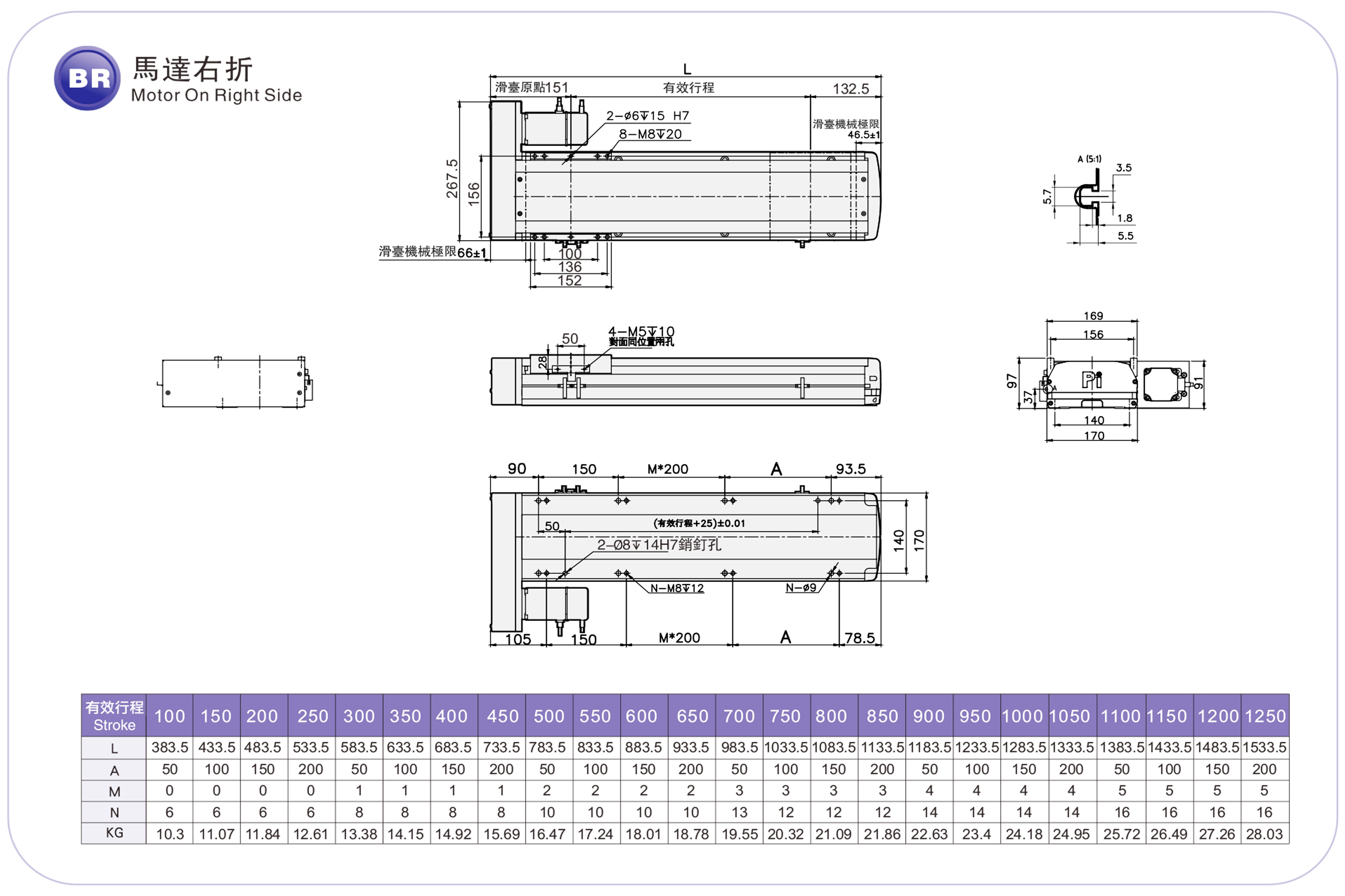 | Environnement standard | vis à billes | RMH17S | 400 W | 170 | ±0,01 | 16 | 5 | 110 | 33 | 200 |