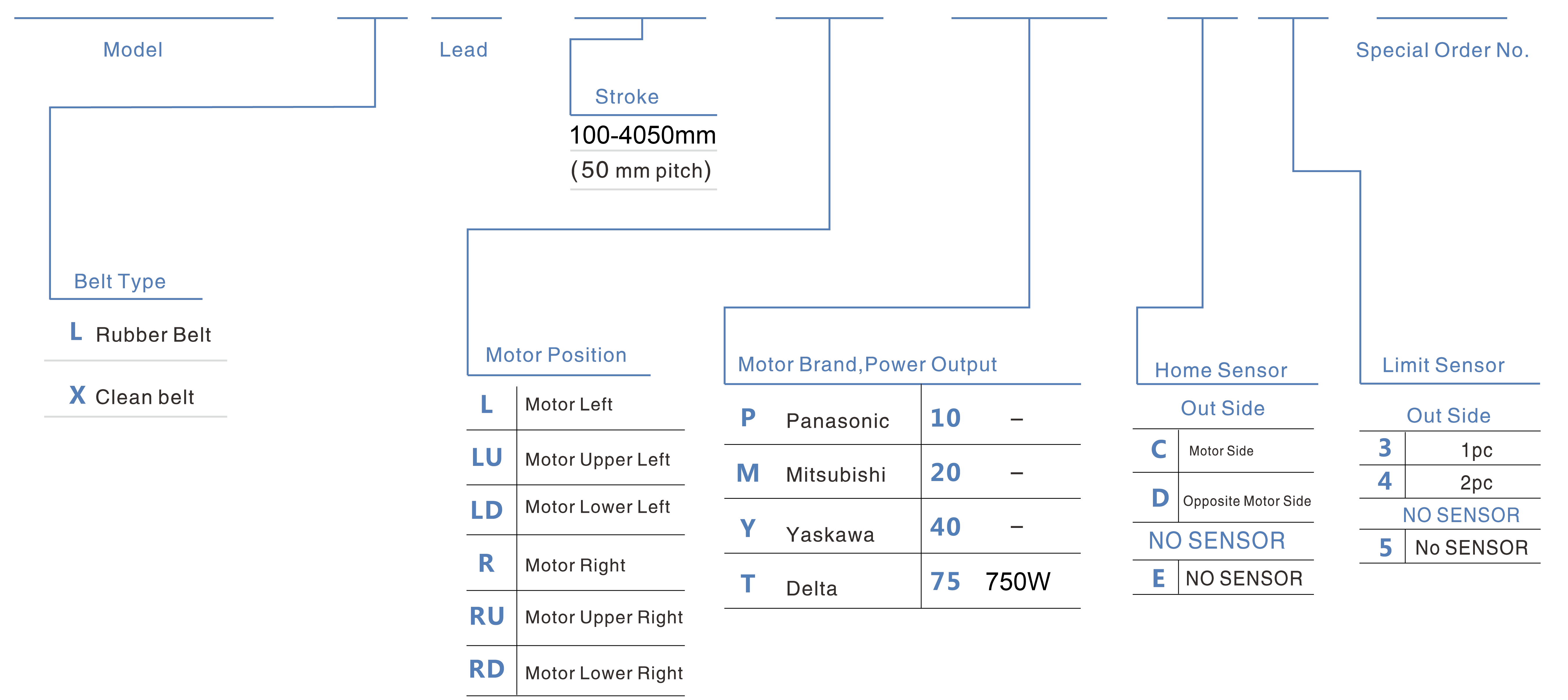 | Pas de la course (mm) | Pas de 100 à 4050 mm / 50 mm | ||