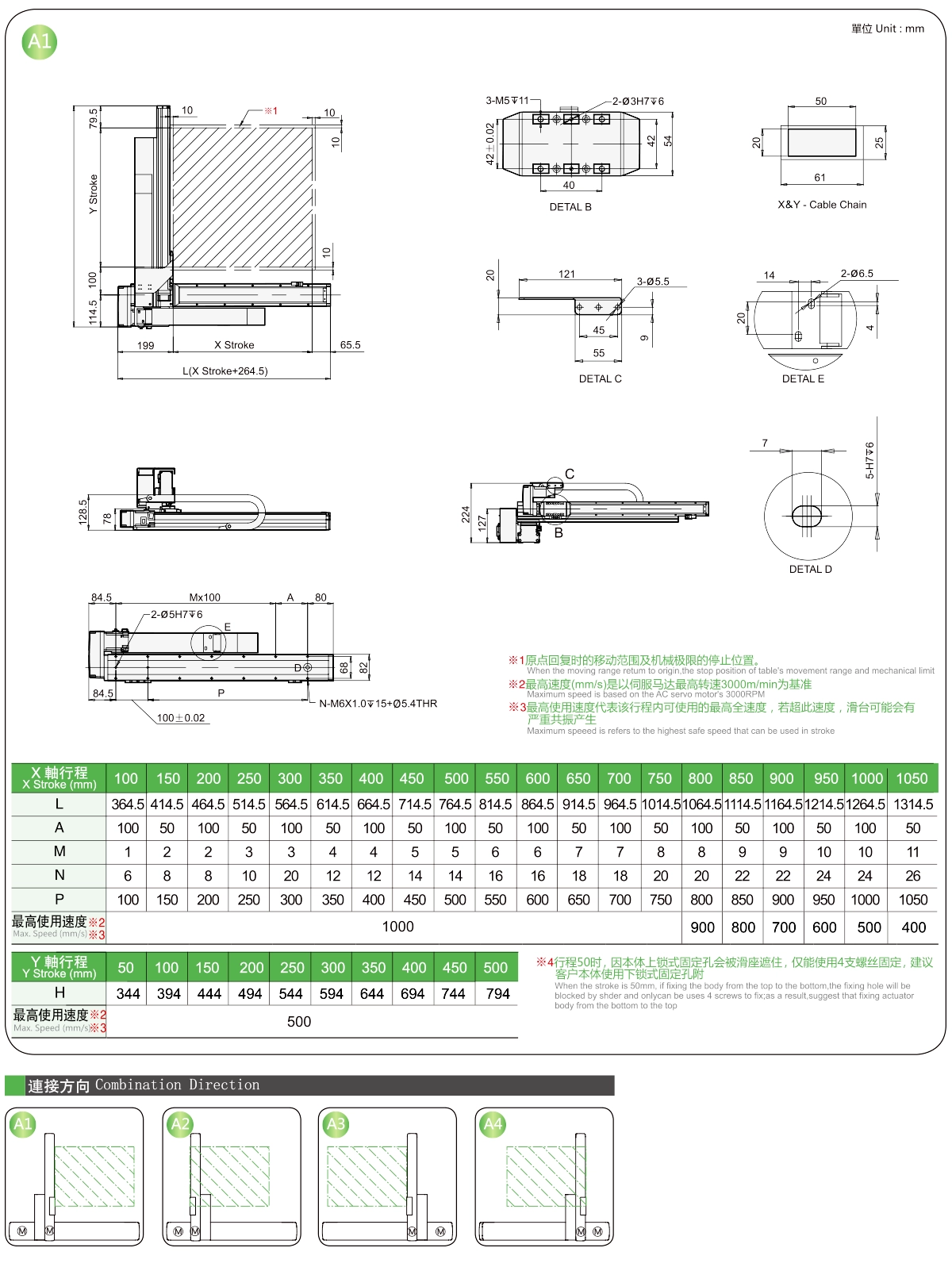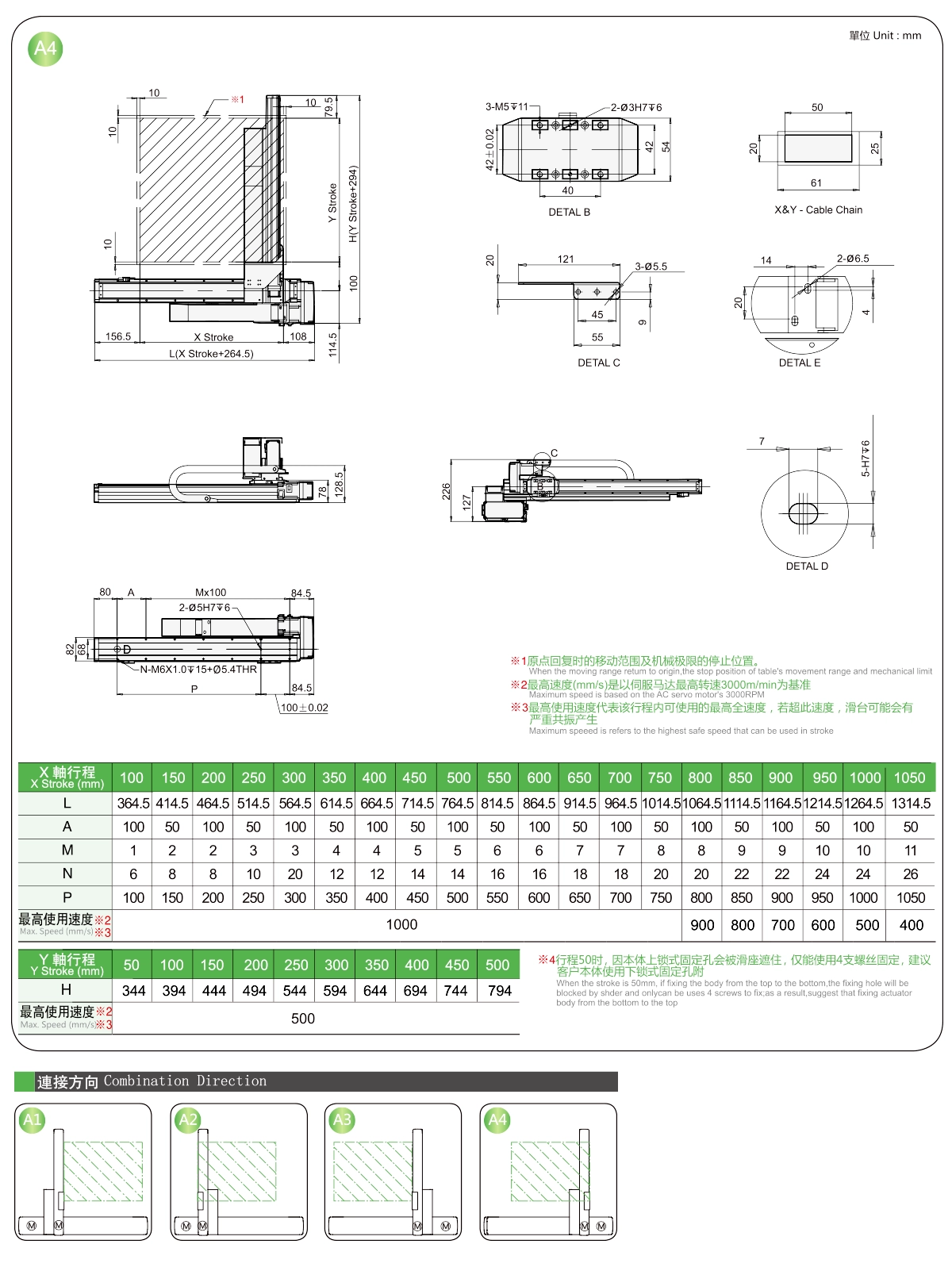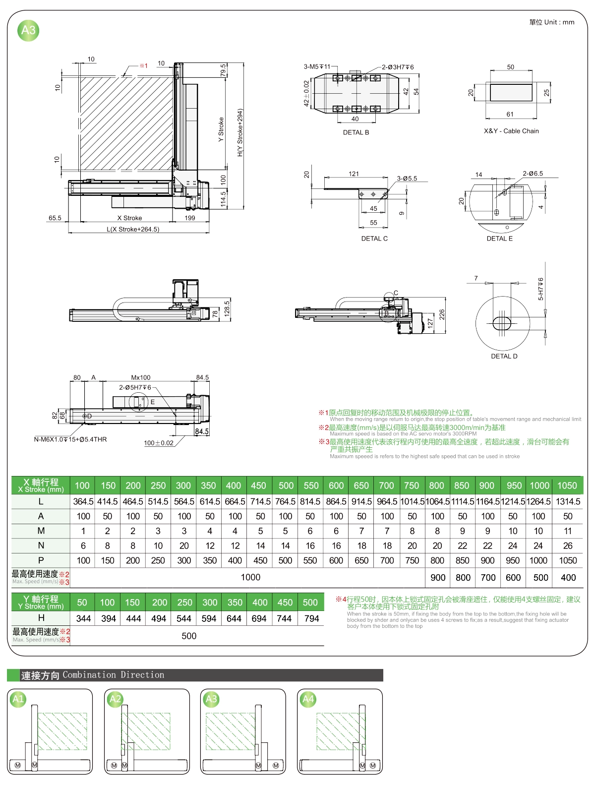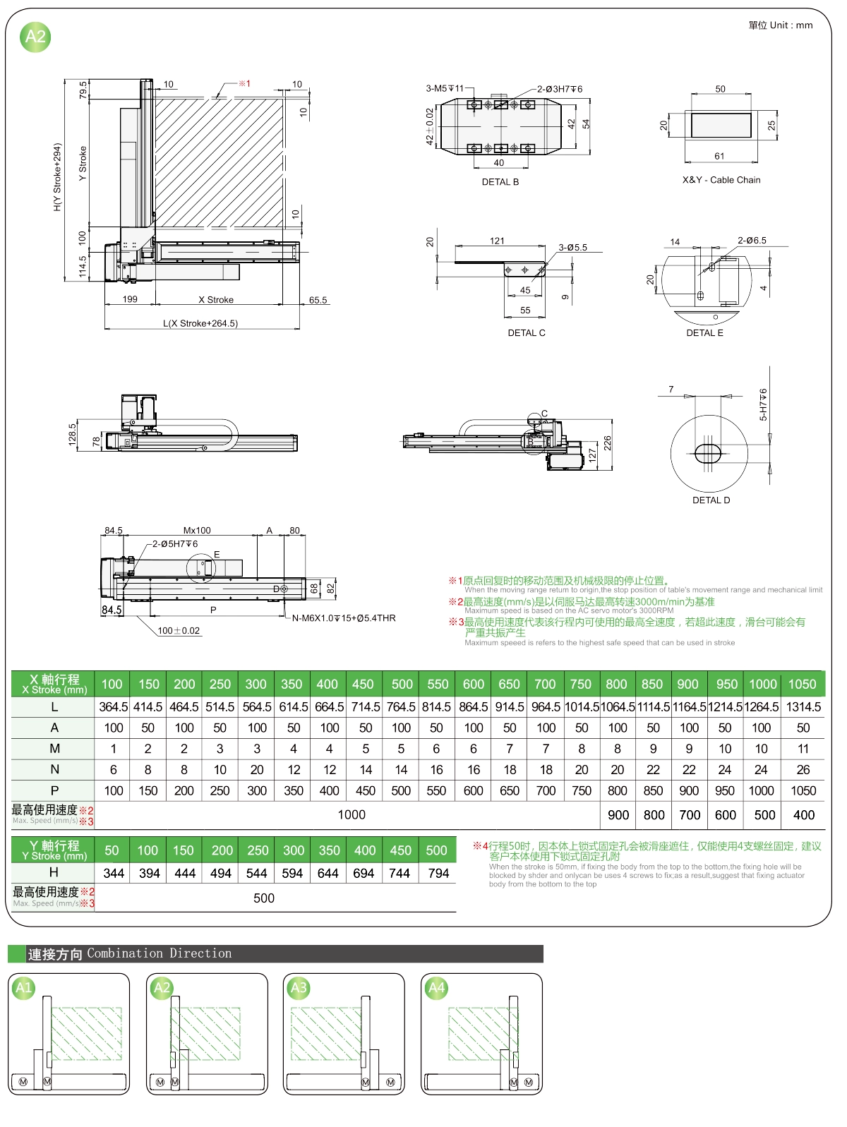 | Course Y (mm) | 50 | 150 | 200 | 250 | 300 | |
