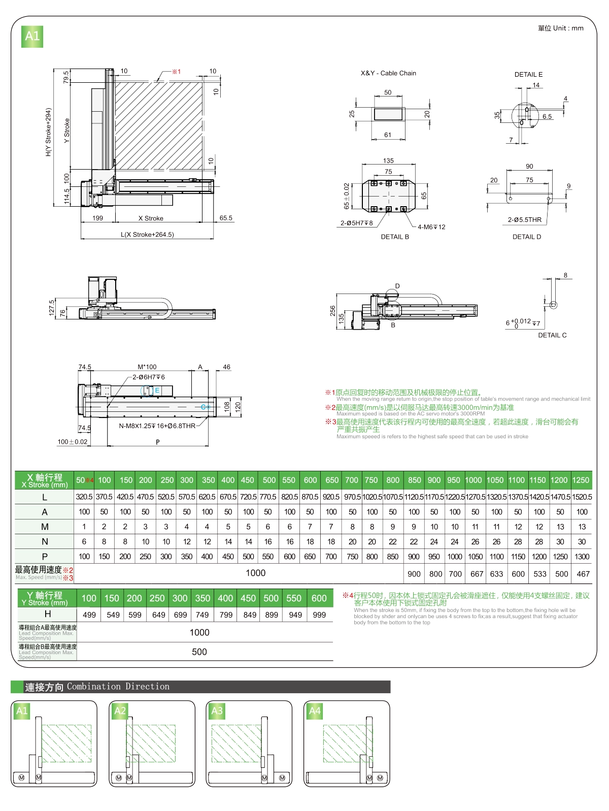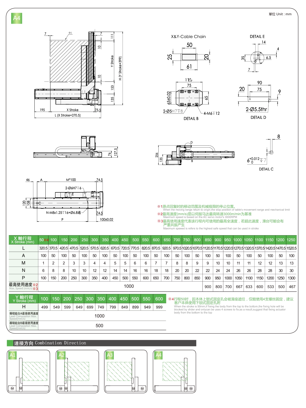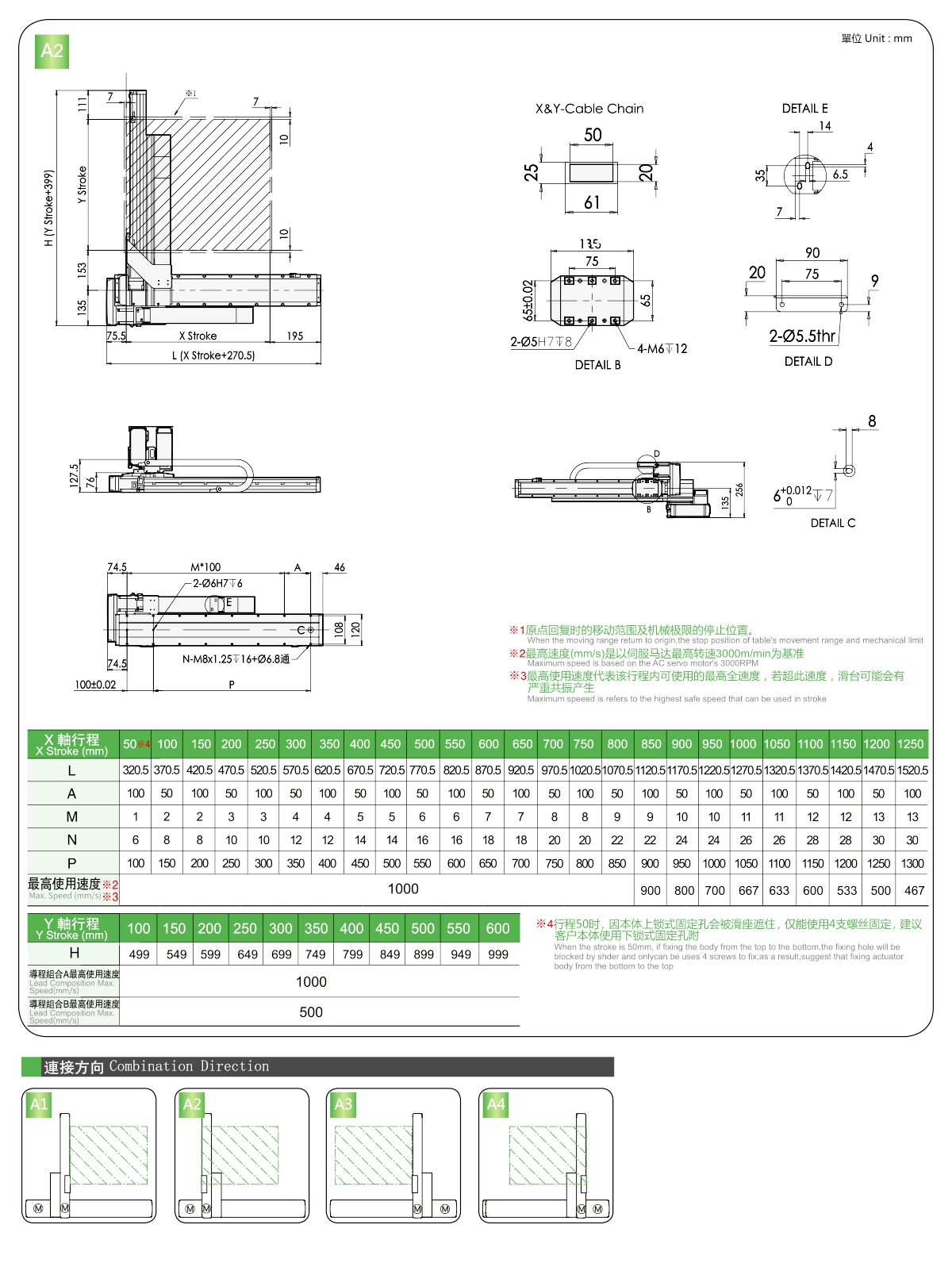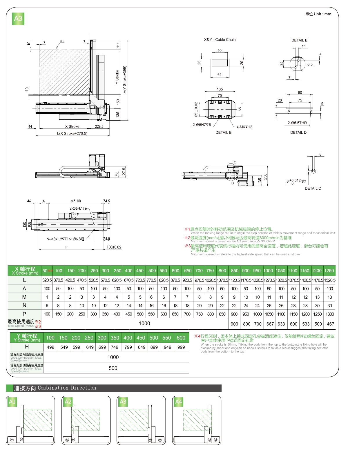 | Course Y (mm) | 100 | 150 | 200 | 250 | 300 |