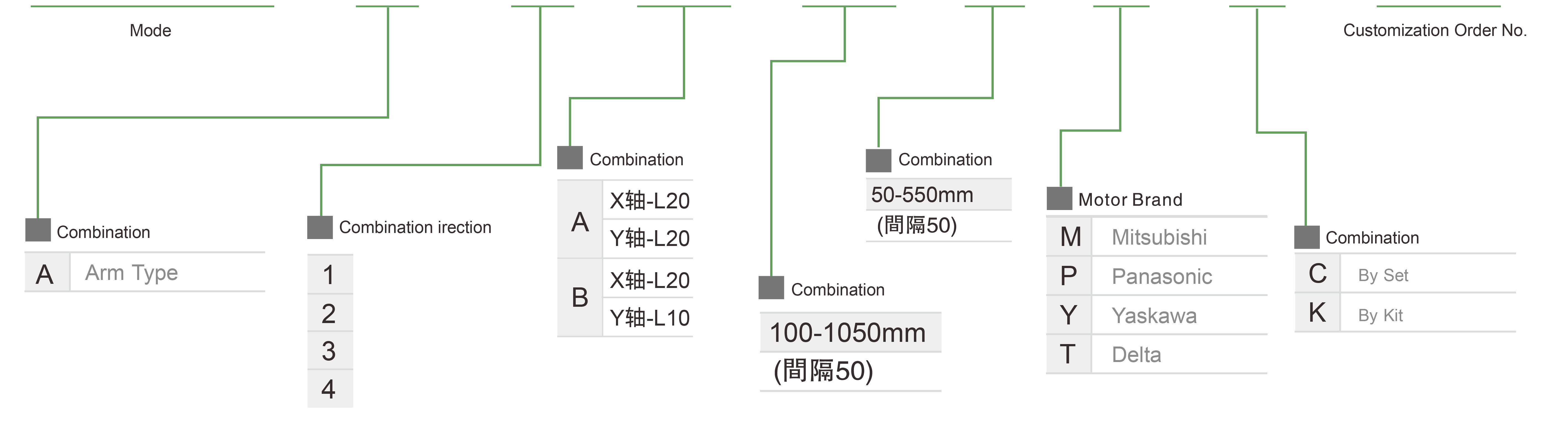 | Course Y (mm) | 100 | 150 | 200 | 250 | 300 |