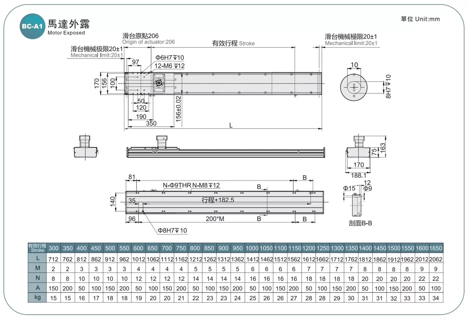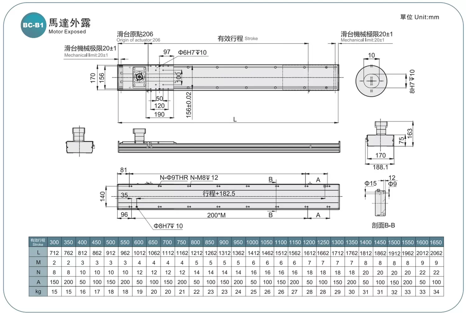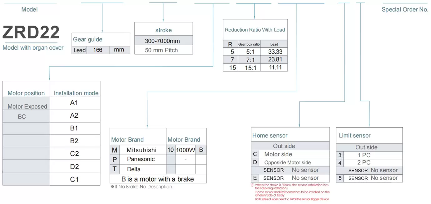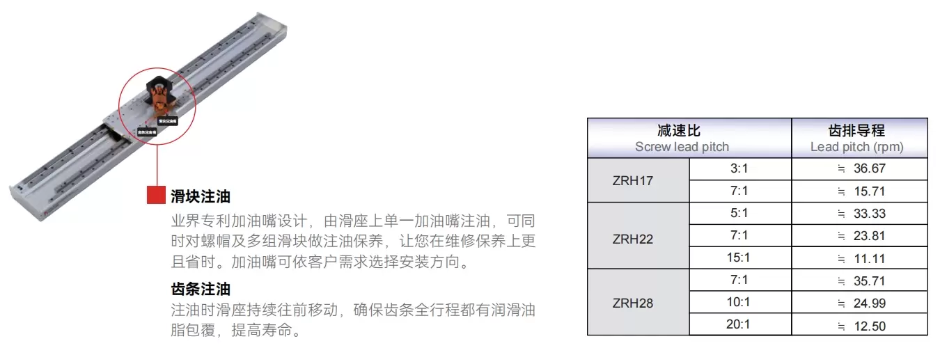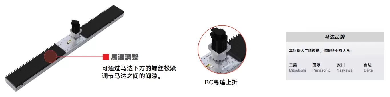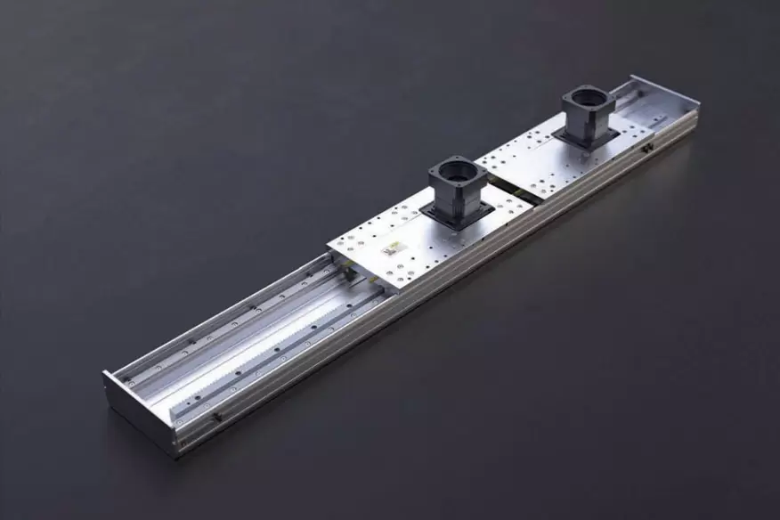 Grâce à sa protection par courroie en acier, la table coulissante est protégée contre la chute de corps étrangers. Sa course maximale atteint 1 500 mm. Le moteur multidirectionnel est orientable, offrant ainsi une plus grande flexibilité de conception. Il est compatible avec les servomoteurs de différentes marques.